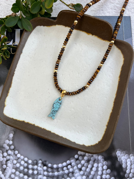 שרשרת מדגם טייגר-איי ותליון דג מאבן טורקיז